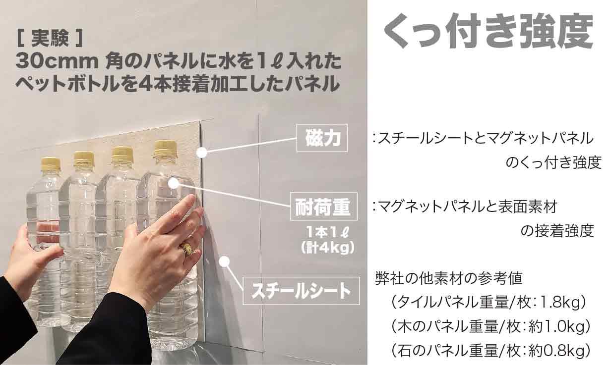 (注:クロスが貼ってあるような壁や塗装壁は、スチールシートを壁に貼ってからタッカーで数箇所打って使用してください)